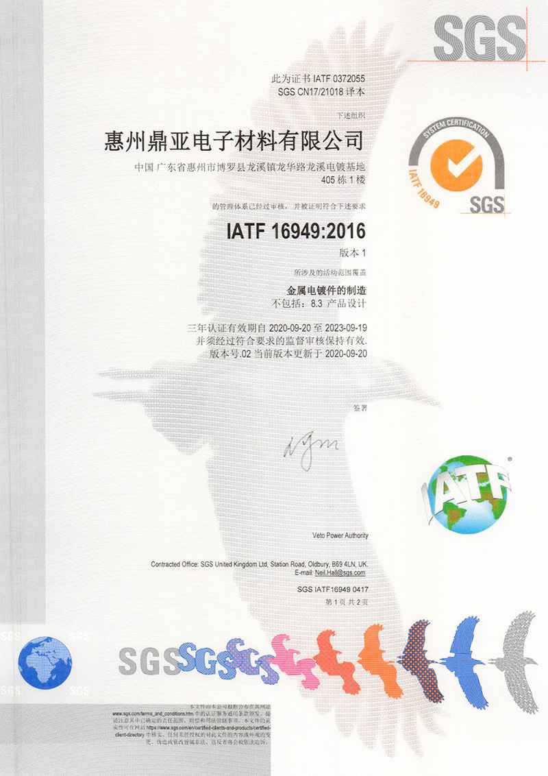 惠州IATF 16949:2016认证证书